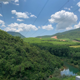 Das Highlight vom Tag war aber die Begegnung am Mittag. Ich hielt bei einem, sagen wir mal ‚Strassen-Kiosk‘ an um eine Cola zu trinken und werde von einem Mann angesprochen. Nachdem die üblichen Fragen gestellt wurden und eine nette Konversation stattfand, wurde ich kurzerhand zum Mittagslunch eingeladen. Da dieser im Gebäude daneben war, nahm ich die Einladung an. Es handelte sich um ein siebenköpfiges Team von Ingenieuren, welche aus Hanoi kommen und im Strassen- und Brückenbau tätig sind. Die nächsten 6 Jahre reisen sie mit der Entwicklung der neuen Strasse quer durchs Land. Momentan haben sie eine Garage in ein Office umfunktioniert, in diesem wird kurzerhand ein Teppich ausgerollt und das Essen gereicht. Speziell fand ich, dass Bier getrunken wird während der Arbeit und der Teamleiter sagte mir, dass dies nur am Sonntag der Fall sei. Wie mir auch schon andere Einheimische berichtet haben, arbeitet auch dieses Team sieben Tage die Woche. Auch etwas komisch war, dass sie das Bier mit Eiswürfel trinken, aber ich habe einfach alles genau so gemacht wie sie. Getrunken wird viel. Alle paar Minuten hebt einer das Glas zur Mitte und die nächsten Dosen müssen geöffnet werden. Ich sage mir, Bier wirkt isotonisch und das Getreide liefert Kohlenhydrate, also rein damit! Gegessen wird wie gesagt am Boden, im Schneidersitz. Da meine Beine seit 3 Monaten eigentlich nur noch eine Position kennen, zog es mir nach kurzer Zeit einen Krampf, gefolgt von zwei weiteren. Keine Ahnung was die gedacht haben, als ich aufgeschossen bin um das Bein zu belasten.. Trotz Krampf eine schöne und nette Begegnung. Morgen geht es in einer kurzen Etappe nach Dong Hoi und vielleicht gönne ich mir dort dann einen Tag Jubiläums-Pause - mal schauen wie gemütlich das Hotel ist…