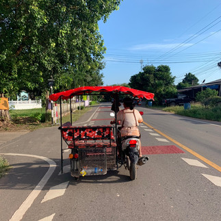 Das Frühstücksbuffet war 1A und ich durfte dieses um 06.00 h sogar eröffnen. Viele Deckel gab es zu öffnen um den Überblick über das unglaubliche Angebot zu erhalten. Ich habe 3 Teller Kohlenhydrate eingefräst, Nudeln mit Käse, gebratene Kartoffeln und zuletzt Reis. Natürlich immer mit Gemüse, Poulet an Kokosmilch oder sonst was Leckerem. Dies neben dem üblichen wie Müesli, Früchten und Säften. Zähle die Kalorien nicht aber ich denke ein normaler Arbeitstag à 2500 Kcal wäre damit bereits locker abgedeckt gewesen. Ich war also bestens gestärkt für meine heutigen 110 Kilometer. Die ersten 50-60 Kilometer führten mich auf z.T. holprigen Wegen fast ausschliesslich durch Wälder. Herrlich denn da war es schattig und schön kühl. Mein heutiges Ziel war Bang Lamung in der Provinz Chonburi mit rund 300‘000 Einwohnern. Es hat sich gelohnt denn das heutige Hotel ist ebenbürtig mit jenem von gestern. Mit viel liebe zum Détail, genau so wie ich das mag. Am Abend habe ich beim Inder gegessen. Erneut bis knapp vor dem Bersten. Und viel zu scharf, auch beim Inder gilt ‚nicht scharf = genügend scharf‘ 🥵